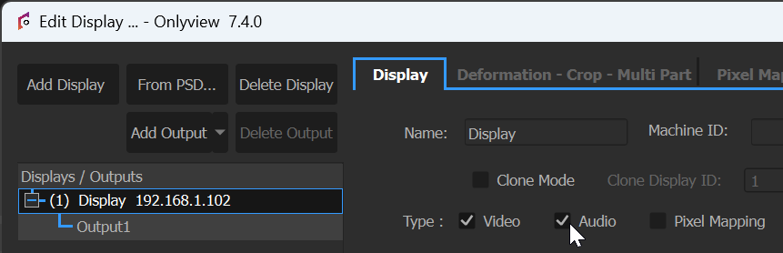 One of the Media Servers need to be identified as the server that will output the sound. To do this, select the required Media Server, and check “Audio” :