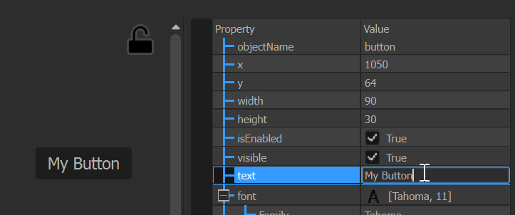 All the UserScreen Widgets can be inspected and edited using the right panel, when in edition mode: