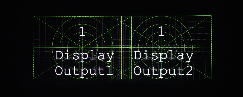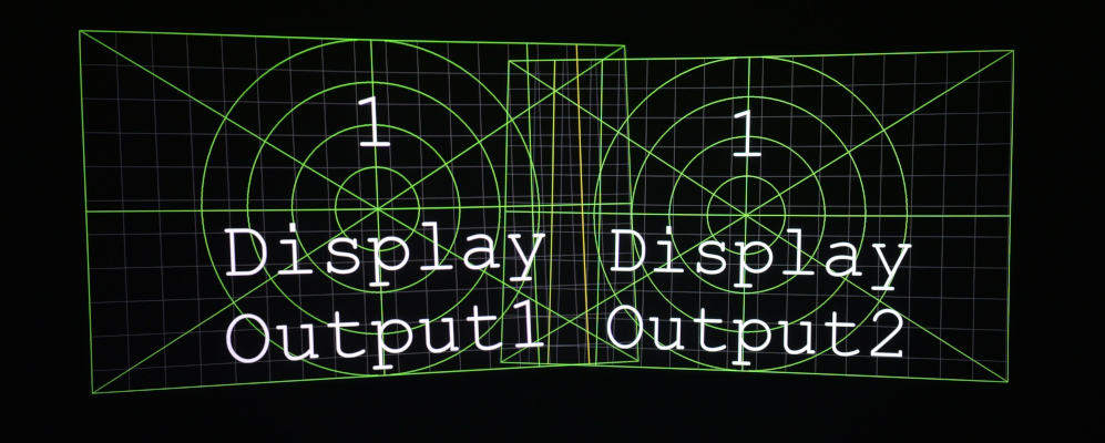 For reference, this is what a raw output, without keystone or softedge, looks like. Notice that in the middle, there is double luminosity, and the image is not properly aligned: