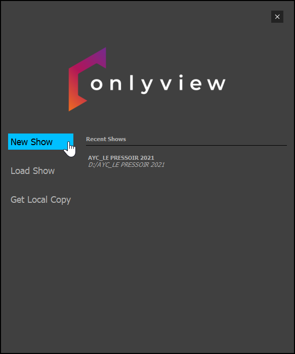 Start Producer and click Create new show. Save it in a new folder in D:/