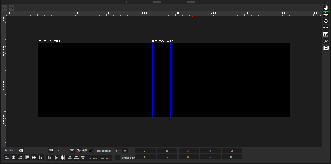 When closing the Edit Media Server dialog, the 2D preview will show the 2 Media Servers with a 512px overlap: