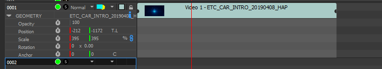 Commonly-used parameters are directly accessible in the timeline: opacity, position, rotation, scale, color, etc.
