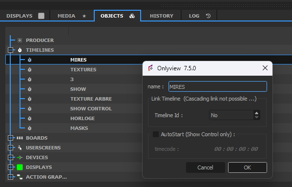 Onlyview shows are organized using timelines. A timeline contains multiple cues, which will be played sequentially.
