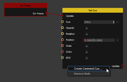 Nodes of Action Graphs can be inserted on Command Layers. Right-click on a node to access the feature: